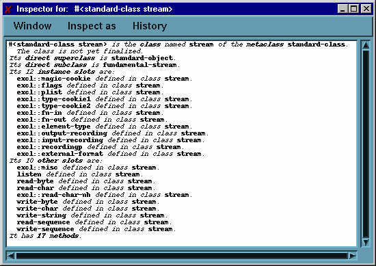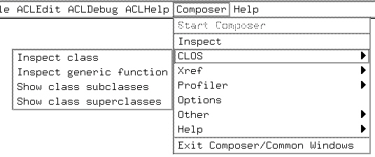 Composer/Clos/Inspect Class menu item prompts you in the minibuffer