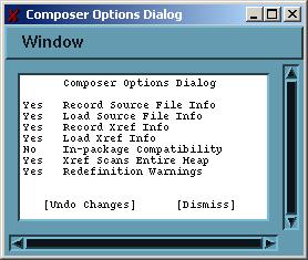 Allegro Composer is an interactive, window-based development environment to be used with Allegro CL on Unix platforms. It contains a debugger, an inspector, a runtime analyzer, various browsers (for processes, CLOS objects, etc.), a connection to the Cross Reference facility, and more. You must run Allegro CL as a subprocess of Emacs. The Composer windows are X windows.