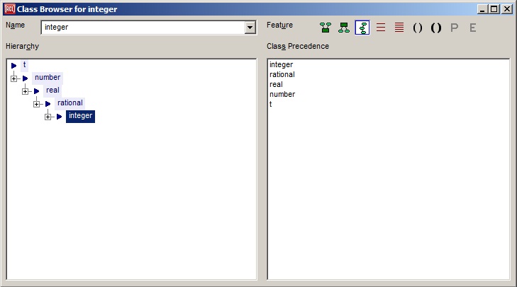 The next two choices list methods of the selected class. Double-clicking or pressing ENTER on one of these methods invokes the IDE editor on that method (if the location of its source code is known). Invoking the Run | Trace command will trace just the selected method, rather than its generic function. Invoking the Edit | Delete command will offer to remove the selected method from your lisp environment.