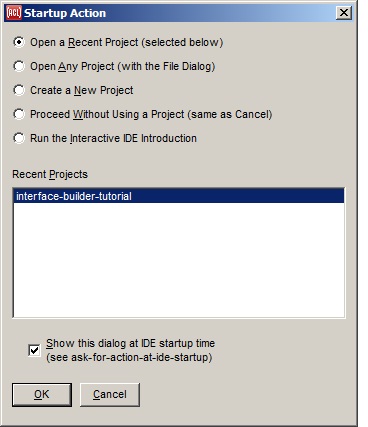 This dialog is never shown if the IDE is started up with a