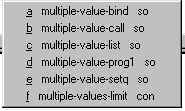 Now press `a'. The `a' choice, multiple-value-bind, is printed in the editor.