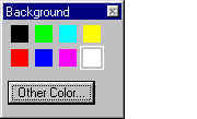 Windows has provided many standard (called common) dialogs for common actions. One is the file choice dialog (a dialog that lets you pick a file on the system) that everyone is probably familiar with. Another is the color choice dialog. The background-color dialog allows a user to choose a background color for the doodler window. Several choices are provided along with a way to get many more choices and even make a custom color using a common color-choice dialog (clicking the Other Color button).
