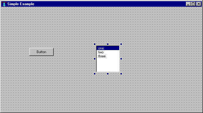 Change the title of the form to Simple Example by selecting the original value (Form1) as follows. Select the text (Form1) which is the value of the title property and type Simple Example. Alternatively, click on the extended editor button (with the three dots, on the right, when the title property is selected, and replace Form1 with Simple Example in the dialog that appears and click OK. The title of form1 will change to Simple Example. (This change is already made in the illustration.)