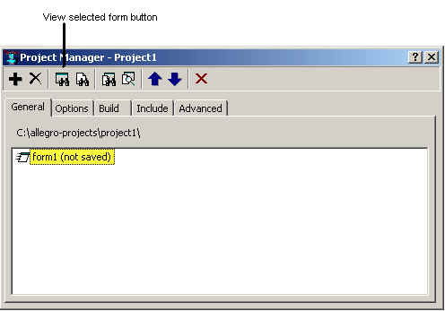 Now select the blank form. If it is not visible, click on (and so select) form1 (not saved) in the Project Manager and click on the View Selected Form button (shown in the illustration).