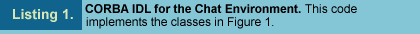 module chat { interface ChatListenerI { void messageReceived(in string message); }; interface ChatServerI { void addListener(in ChatListenerI listener); void sendMessage(in string message); }; }